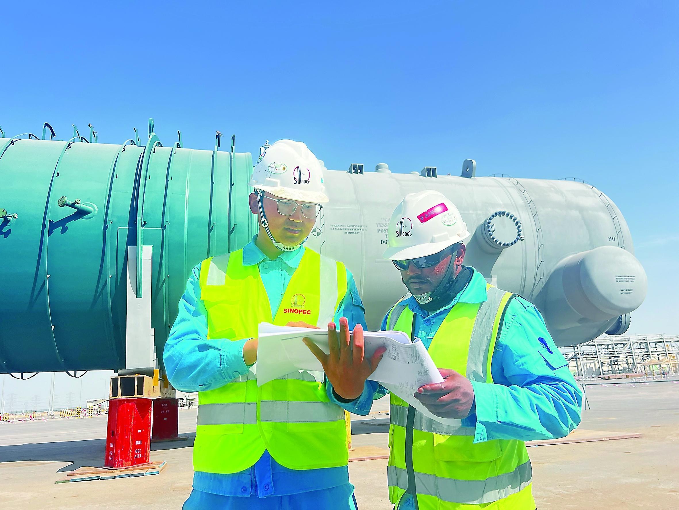 一年来,在项目部中外员工的努力下,装置区塔器立起来了、灯亮起来了、动设备相继通过了总包验收,项目施工进度、安全、质量全面受控。业主沙特阿美项目经理穆罕默德点赞道:“中国石化速度了不起,青年朋友非常棒!”