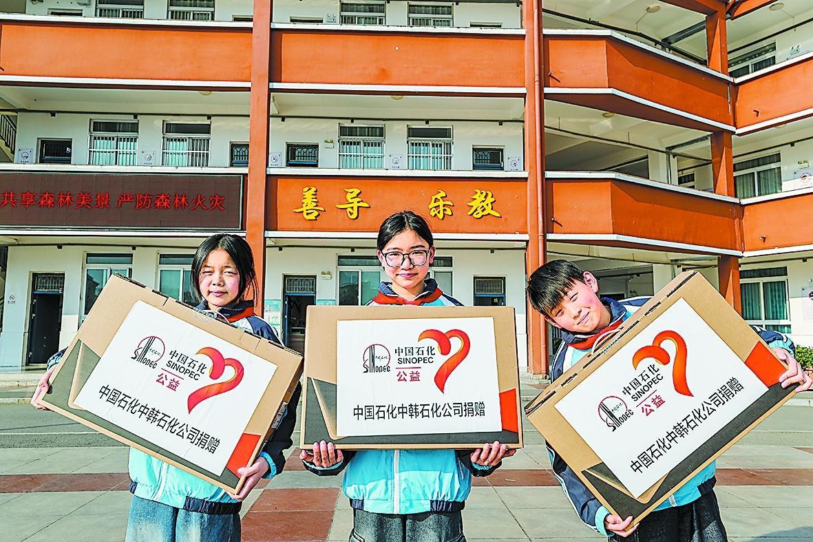 中韩石化与岳西店前石化小学的结缘,是一场向美而行的遇见,也是一段温暖人心的历程。自2021年结对以来,该公司多次实地调研了解学校需求,先后捐赠空调、打印机、体育器材、课桌椅、书包等用品,每年还向优秀师生发放奖金,并多次组织教师培训、师生研学。随着各项帮扶措施的落地,岳西店前石化小学的教学质量大幅提升。学校先后被评为安庆市“兴趣教育”特色学校和“绿色学校”。该校师生还多次在省市县各类比赛中获奖。
