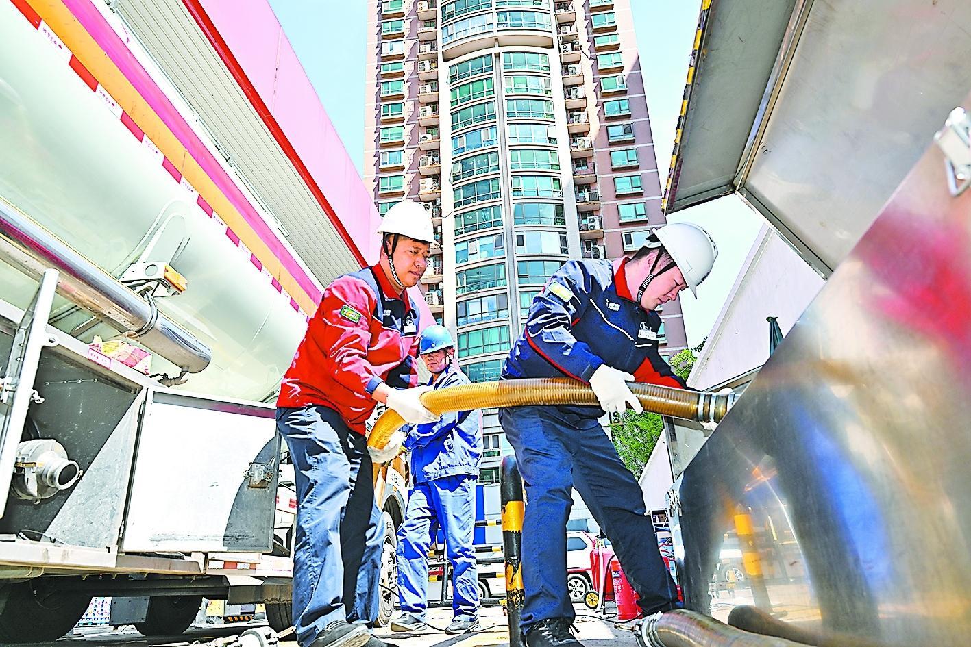 “五一”假期,北京石油各库站员工坚守岗位,严格把控油品质量,持续提升服务水平,强化首都油品供应,全力做好游客出行用油保障。5月1日至5日,北京石油累计服务加油客户152.6万车次、服务充电客户7.08万人次。图为5月1日十里河加能站员工接卸油品。本报记者 胡庆明 摄 庞 霞 文