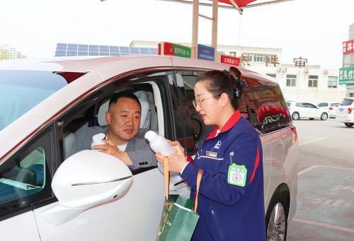 近期,山东滨州石油在加能站打造中国石化自有品牌优易家商品专区,并配置商品海报,通过加油机大屏、墙面电子屏等进行宣传轮播,营造浓厚的营销氛围。图为滨州石油阳信2站站长王永霞(右)向客户介绍优易家商品。杨希芹 摄