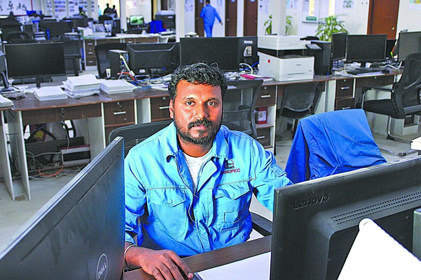 苏根毕业于印度理工学院,曾在卡塔尔、阿联酋等地的石油化工企业工作,2020年加入十建公司科威特GC-32项目。“看到中国石化的工程师用三维模型指导施工,我被他们专业和认真的态度深深吸引。”苏根抚摸着桌上已被翻旧的《中文工程术语手册》,回忆起入职时的情景。