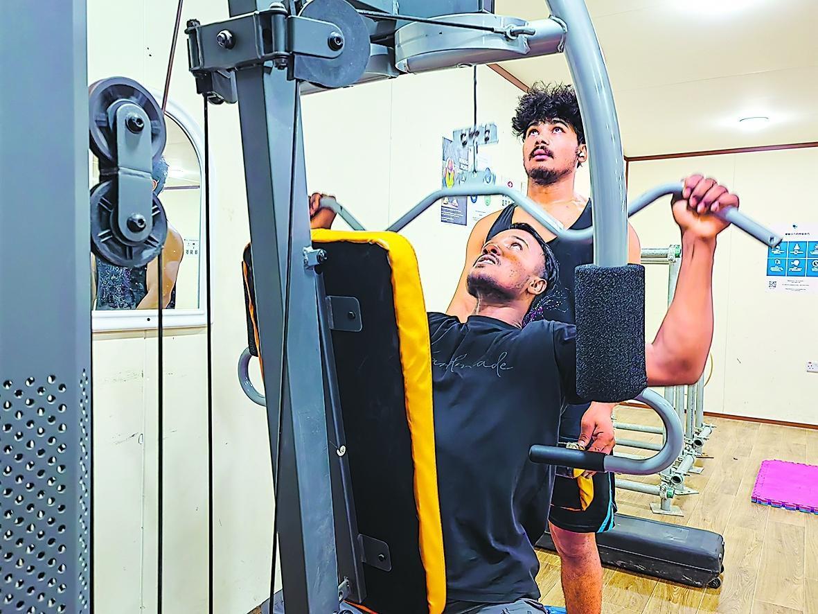 00后技术员杨刚就是这套健身法的受益者,参与锻炼以来他的体脂率下降5%,5公里竞速跑进19分钟。自2月以来,8人撸铁小分队累计减重110斤,00后技术员黄富强更以体脂率下降7%的成果成为项目“健康之星”。健康的体魄让大家以“满血”状态投入工作,项目总包方总施工经理安东尼奥对他们的精神面貌十分认可:“装置建设交给你们,我们很放心!”