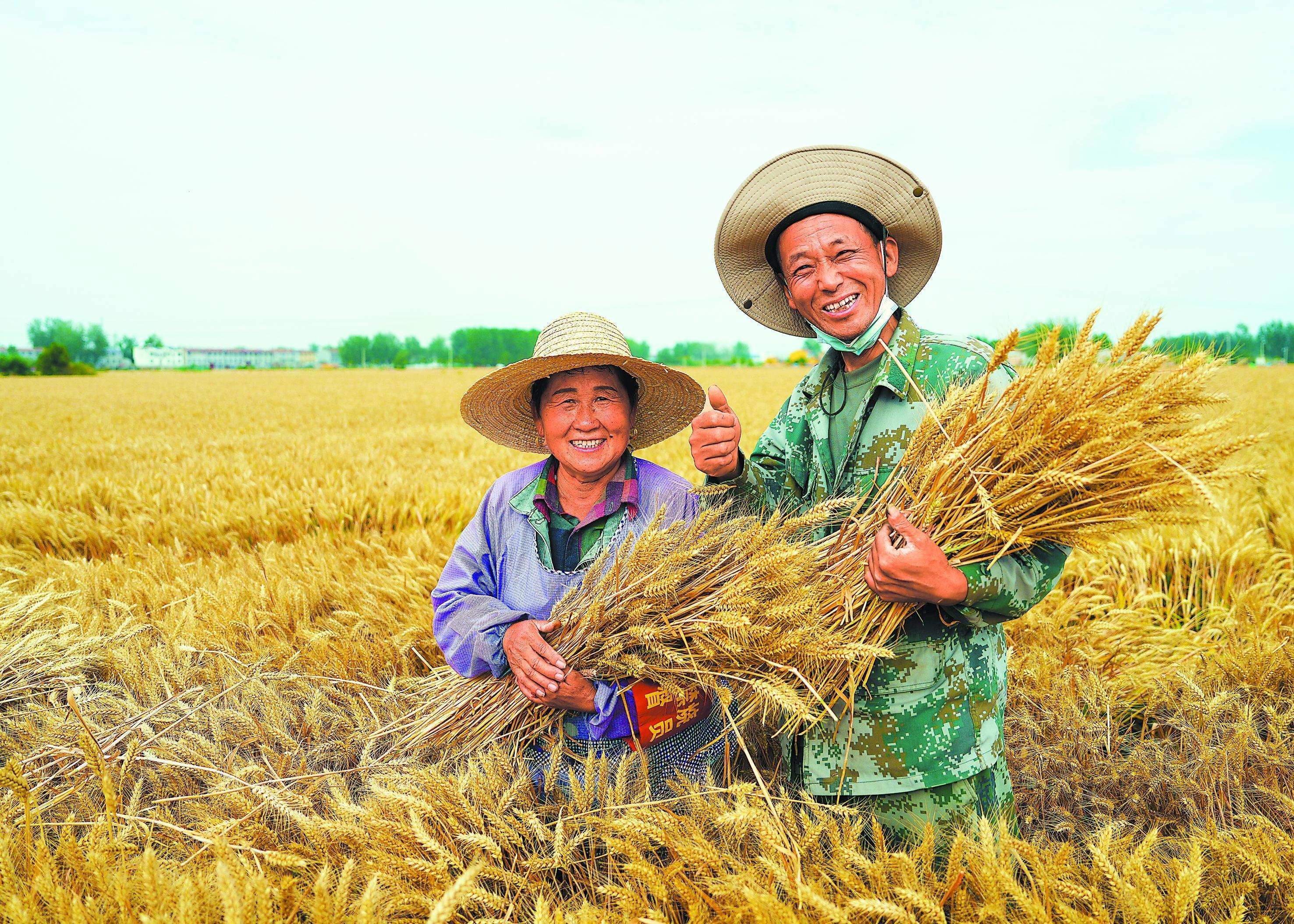 这天,农业农村部组织相关专家对使用红三角牌化肥的酂南村小麦示范田进行现场实打实收,测产结果为亩产1867.3斤,去水、去杂质、去损耗后折合为1758.8斤,比对照田增产31%。