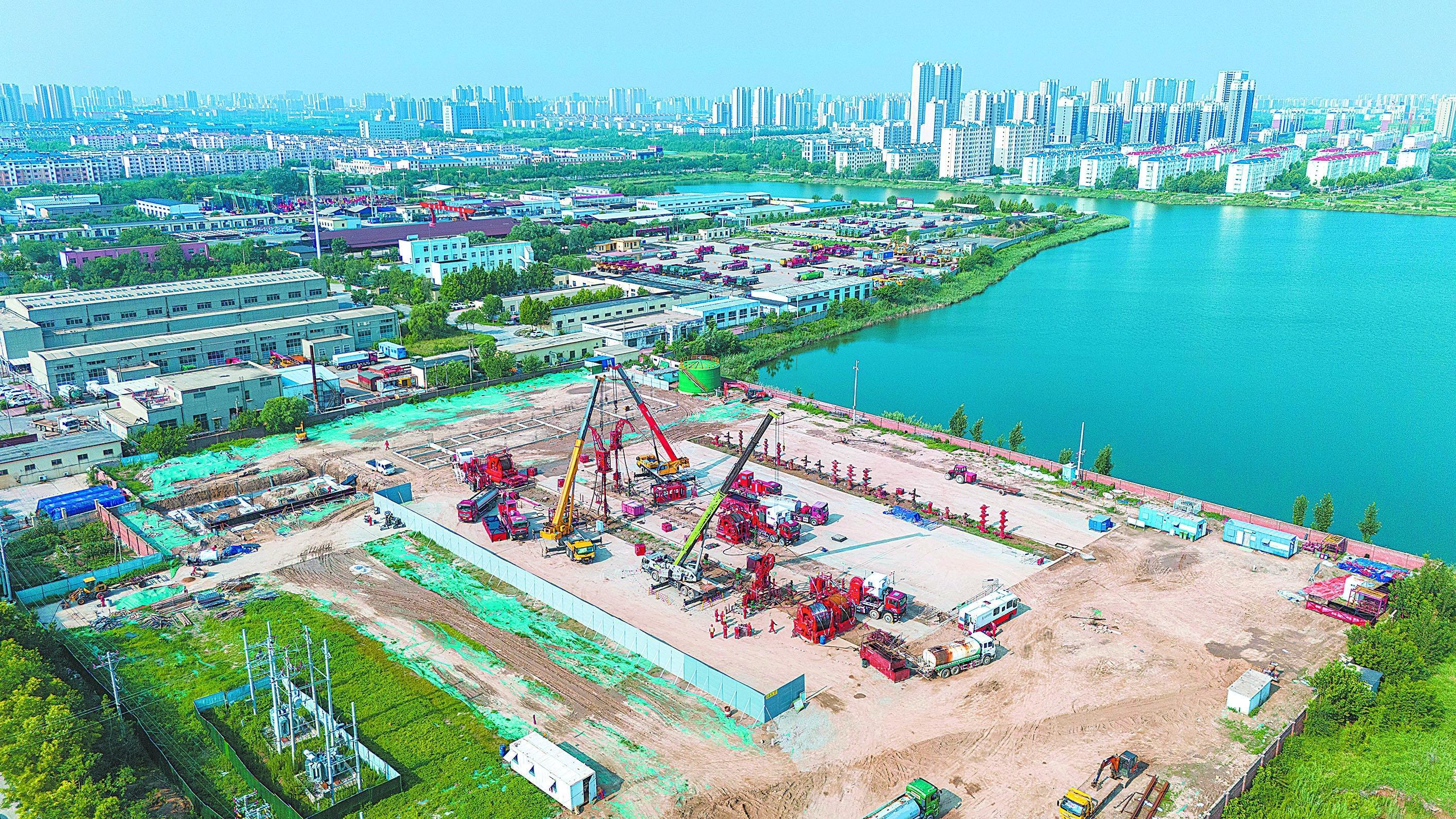 白莲湖区块“井工厂”项目是胜利油田重点产能建设工程。胜利油田创新采用丛式“井工厂”模式进行施工,有效节约用地,全力打造“能源景观一体化”示范工程。截至目前,60口新井全部完钻并完成压驱注水,进入投产冲刺阶段,全面建成后预计新建年产能8.5万吨。图为近日白莲湖区块“井工厂”施工现场。陈 东 摄 王维东 文