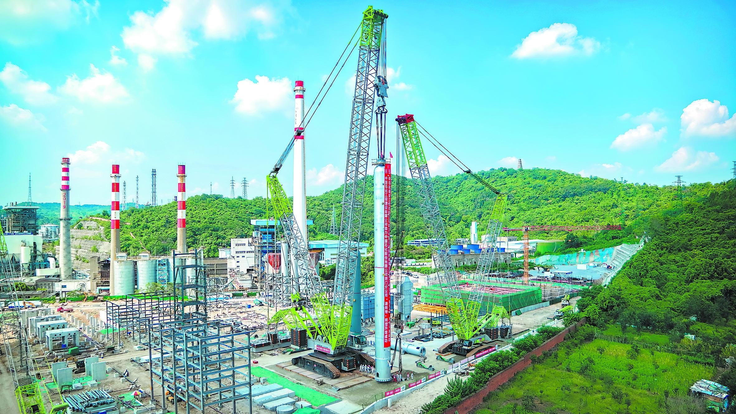 7月25日,荆门石化60万吨/年环烷基特种油高压加氢项目核心设备——加氢处理反应器吊装成功,4台反应器全部安装就位,标志着项目施工进入加速阶段。该项目是中国石化和湖北省重点工程,投产后可生产多种高附加值产品,提升荆门石化特种油品总产量,显著优化高端特种油品结构,助力荆门石化打造百万吨高端绿色特种油品基地。图为吊装现场。刘选锋 摄 蒲红霞 董 静 文