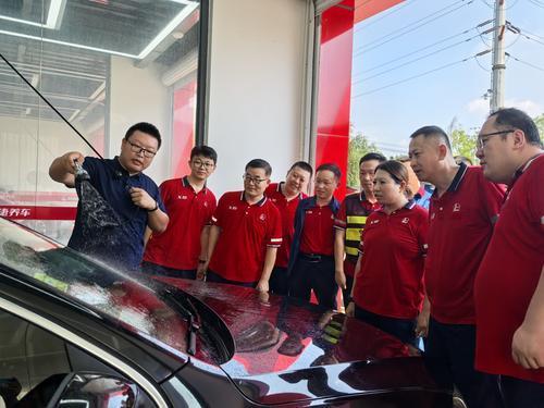 为提升员工易捷养车服务技能,山东德州石油组织开展了专项培训。培训聘请专业讲师详细讲解洗车、玻璃养护、内饰清洗等操作技巧,有效提升了员工的服务水平和实际操作能力。图为8月13日,在城区41站,专业讲师为站内员工详细讲解洗车流程。路 娟 摄