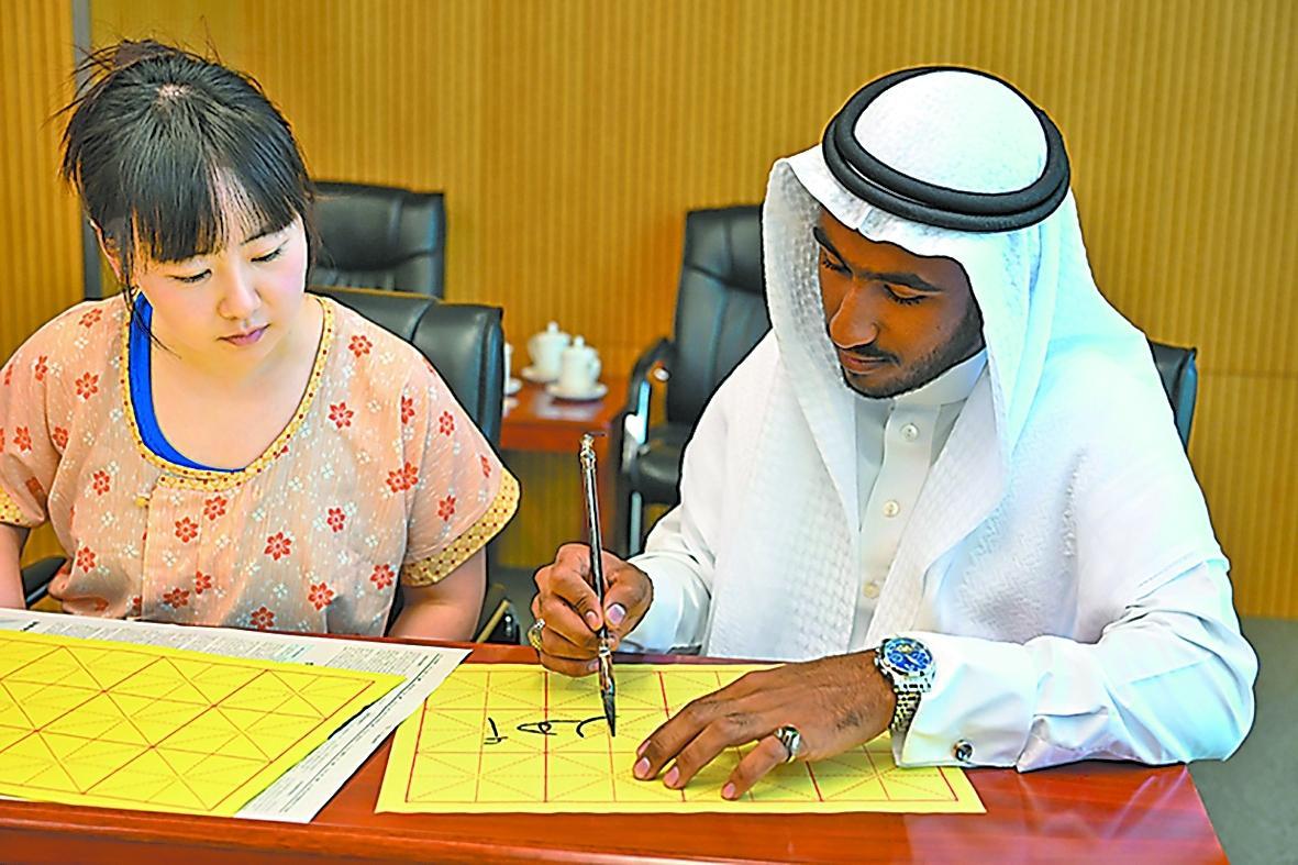 在国工公司与中国石化报社联合举办的“中沙对话 共绘青春”青年文化交流活动现场,中沙青年在书法体验环节尝试书写对方的文字,感受汉字的提按顿挫与阿拉伯文的流畅蜿蜒。“汉字像一个个规整的方块,阿拉伯文则如藤蔓缠绕。”耶哈得和穆罕默德一边展示刚完成的书法作品,一边交流自己的感受。