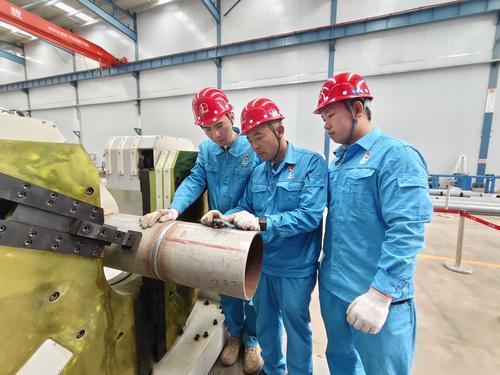 今年以来,十建公司青岛智能建造基地项目党支部以党员责任区为平台,带动党员优化完善52项智能设备管理方案,降低设备管理成本费用120万元。图为8月14日,该项目党员责任区成员检查智能机器人设备管道焊接质量。田元武 摄