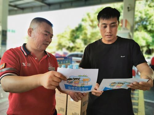 近日,浙江台州石油开展了以“远离危险水域,安全时刻谨记”为主题的雨季防溺水普法宣传活动。工作人员通过发放宣传资料、展示真实案例,结合实际讲解《民法典》等法律法规中与溺水相关的法律责任,切实增强群众对防溺水重要性的认识。图为8月26日,椒江白云山加能站员工向进站司机讲解防溺水知识。 冯晓燕 摄
