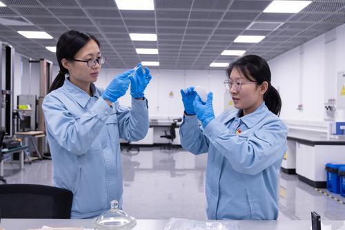 中石化宁波新材料研究院聚焦科研创效,开展聚丙烯透明料产品的添加剂减量优化实验室评估,在优化配方保证产品质量的同时实现添加剂合理减量,为生产装置应用提供可靠数据支撑,实现降本增效。图为宁波新材料研究院科研人员在检查聚丙烯透明料产品的外观质量。何 雯 摄 郭欣琳 文
