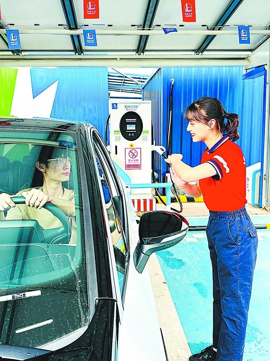 云南昆明石油太和充换电站员工为车主提供充电服务。周云龙 摄