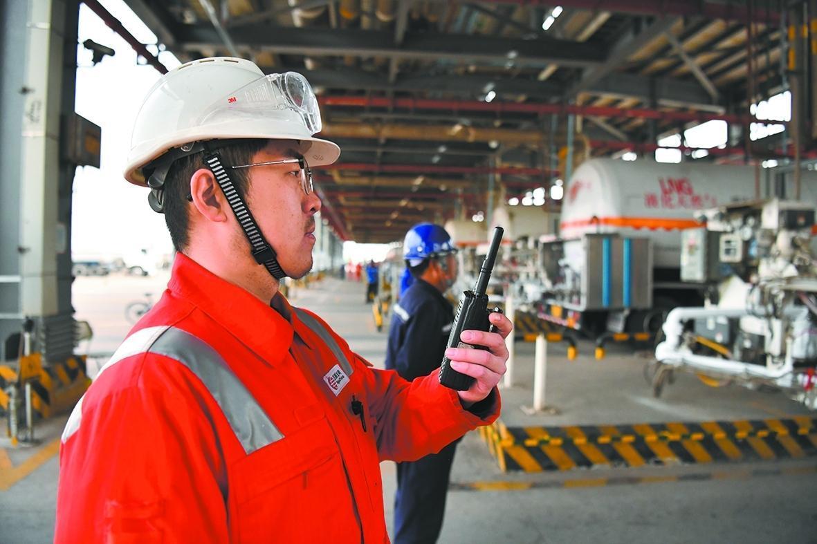 中原油田天然气产销厂天津LNG项目部员工进行现场安全监护。范永光 摄