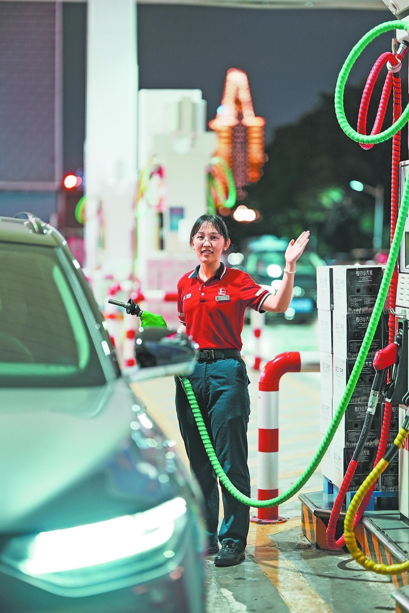 湖南长沙石油滨江加能站员工热情迎接客户。刘金玉 摄