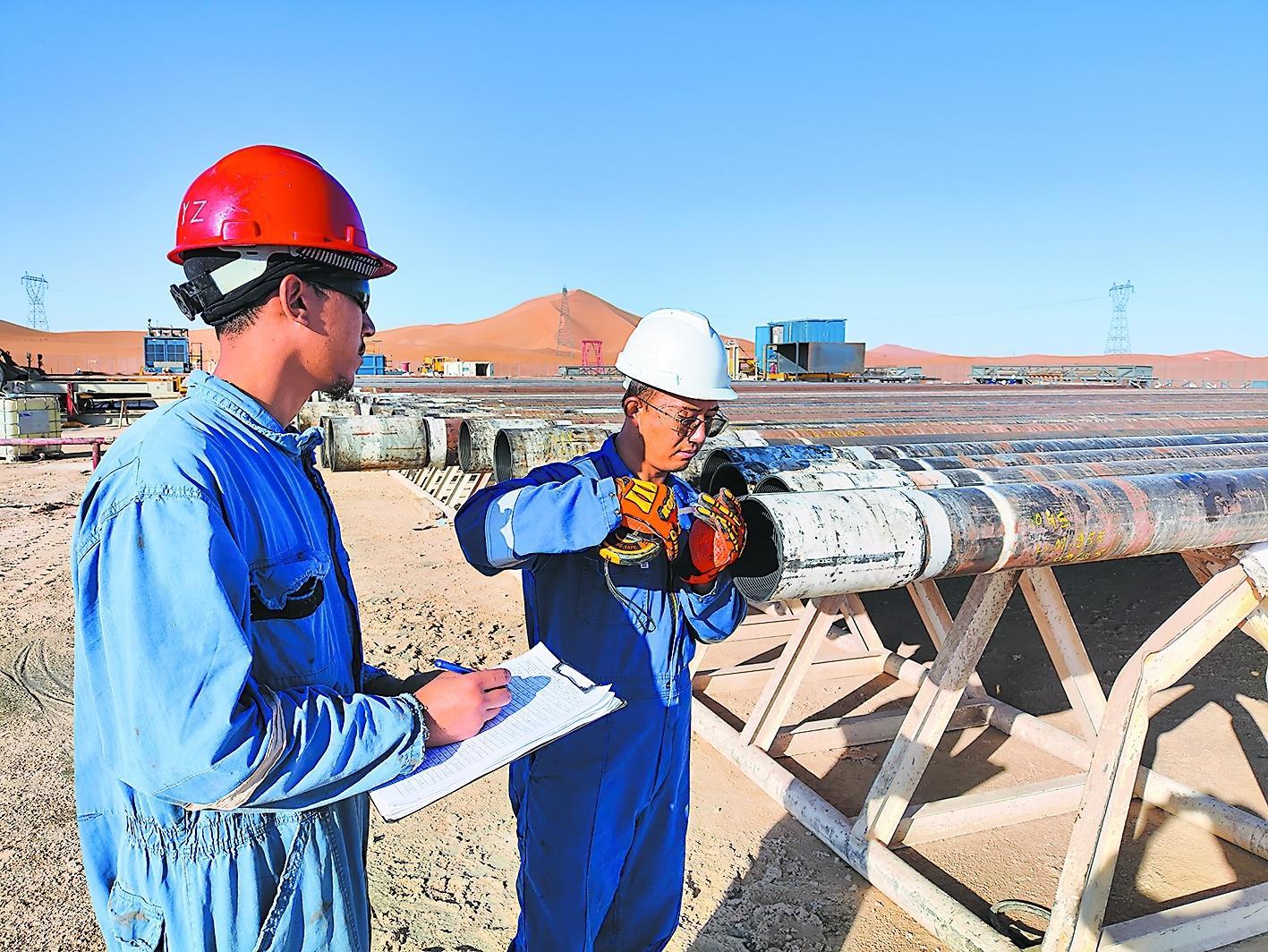 “安全是生产的红线。”面对沙漠腹地的复杂作业环境,SP-224队平台经理王令反复强调这一原则。8月中旬,该队承钻井深3007米的EMK-94井,王令和团队将安全作为施工方案的重中之重。
