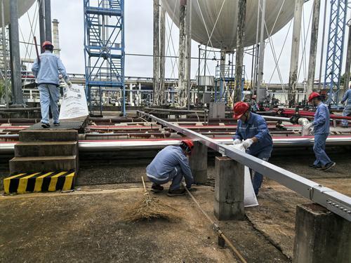 安庆石化储运部发挥党组织战斗堡垒作用,组织党员对罐区、泵房、VOC装置等重点区域开展地毯式排查,逐一核查能量隔离、安全标识、机泵润滑等关键环节,建立问题台账并限期整改,全面提升现场安全环保水平。图为10月8日,储运部贮运区域党支部党员清理装置现场卫生。