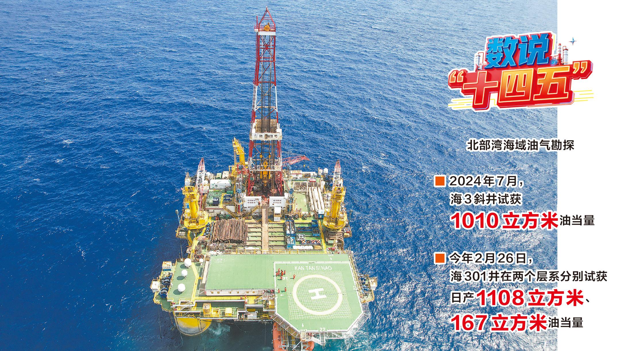 今年2月26日,上海海洋油气分公司部署在北部湾盆地海中凹陷的海301井获高产油气流,在两个层系分别试获日产1108立方米、167立方米油当量,刷新北部湾海中凹陷油气日产量纪录。此前,海3斜井于2024年7月试获1010立方米油当量。