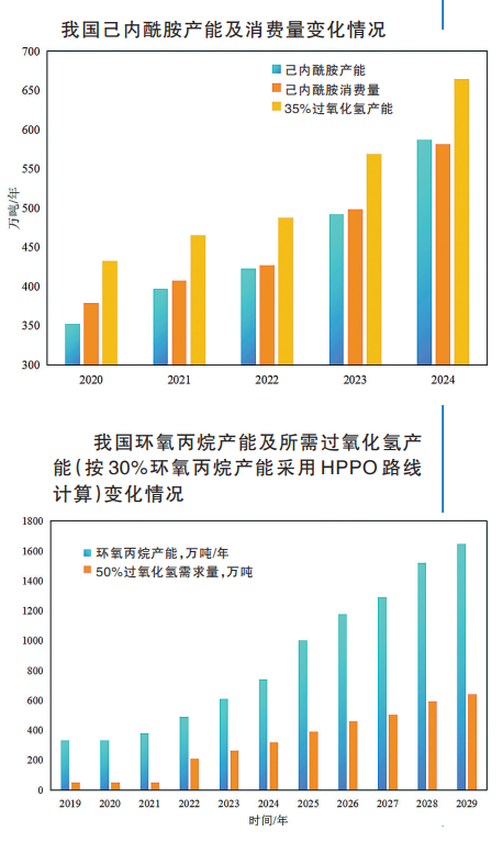 以27.5%纯度计算,2024年,我国过氧化氢产能已突破2900万吨/年,比上年增长25%,占世界总产能的70%以上。