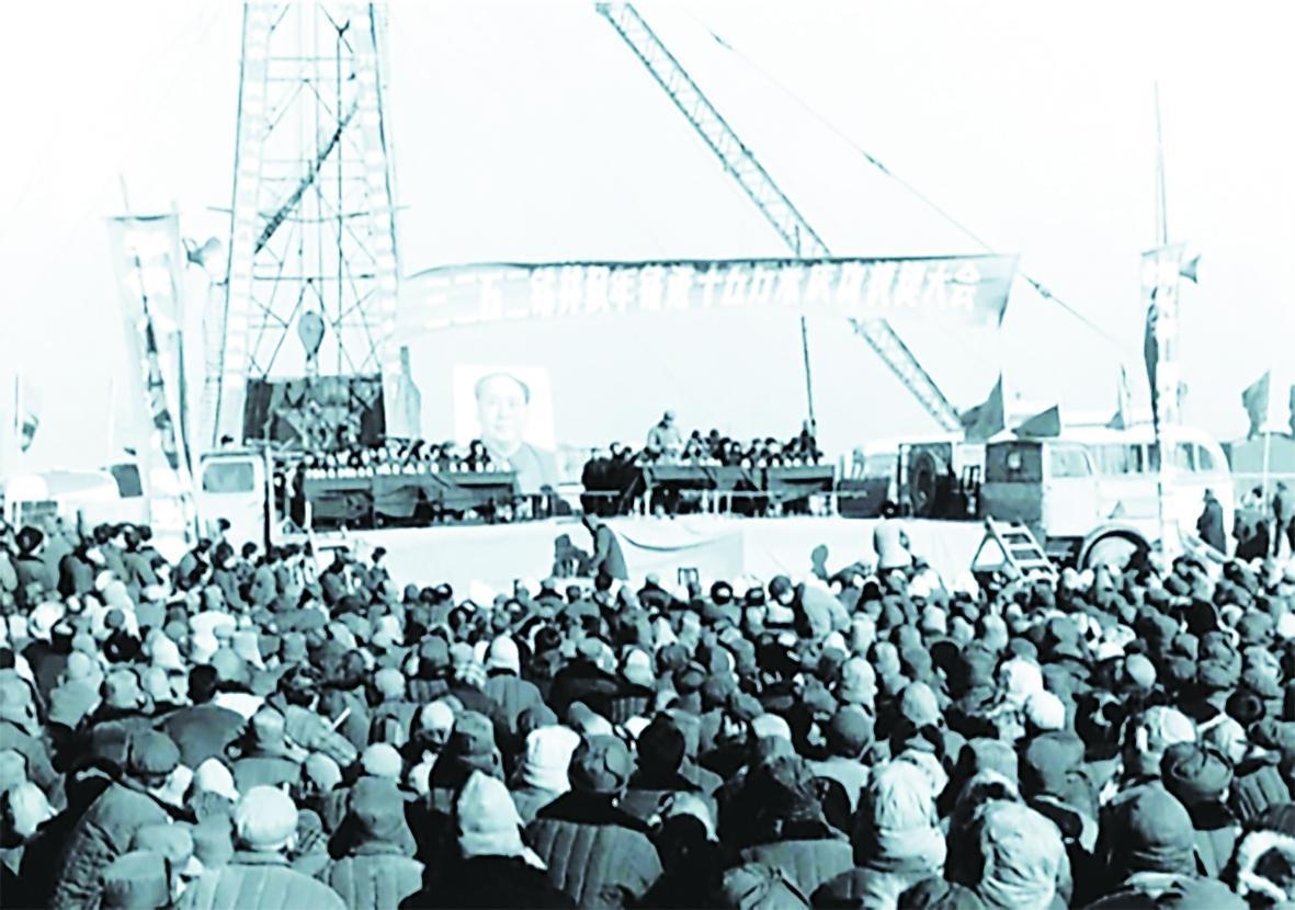步入优良传统故事馆忠诚报国展厅,一张黑白老照片格外引人注目——那是3252钻井队年钻进尺突破15万米庆功祝捷大会的珍贵瞬间。