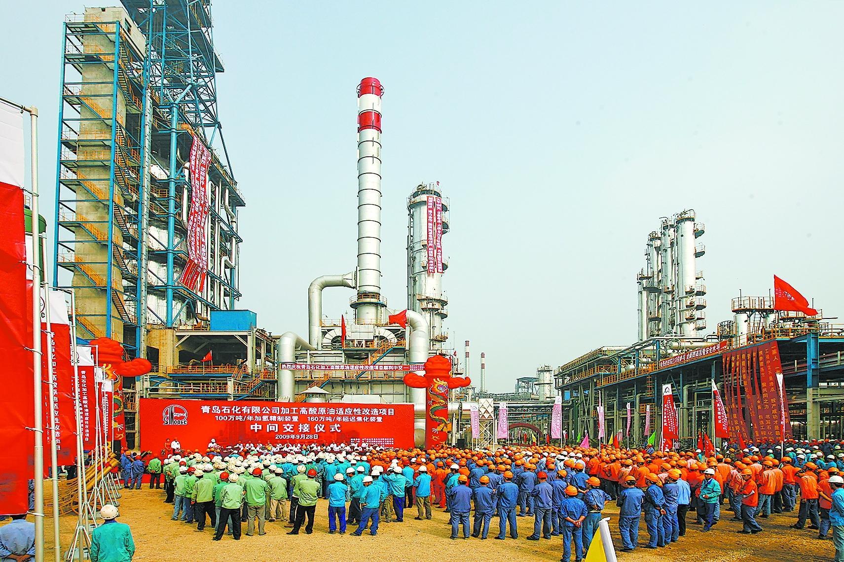 青岛石化加工高酸原油适应性改造项目中交仪式现场。