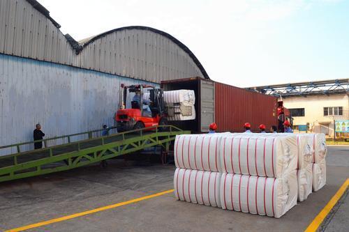 近日,安庆石化顺利完成63包共计21.27吨出口阻燃腈纶纤维的装箱外运工作,该批产品将发往乌兹别克斯坦。此次出口的产品为1.5D阻燃腈纶纤维。为确保产品质量完全满足客户要求,安庆石化腈纶部严格把控生产全过程,重点监控纺位压力、定型喷淋水量、二烘温度等关键工艺参数,确保产品质量合格。图为11月13日,工作人员将阻燃腈纶纤维装运至集装箱。何文生 摄