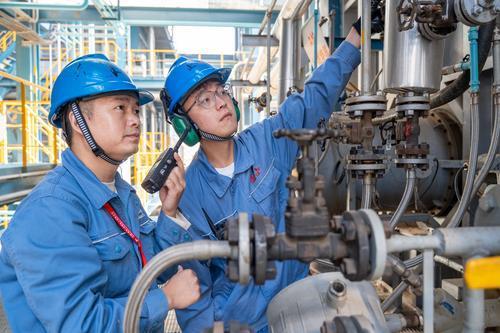 近日,将传统开放式卸剂改造为负压式全封闭卸剂,大幅提升操作规范性与安全性,降低操作人员劳动强度。经实际运行监测,改造后催化剂损耗率降低近0.5%,在强化生产流程管控的同时,进一步提升生产效益,为装置高效稳定运行筑牢基础。图为技术人员验收卸剂成效。翁利民 摄 王 冲 舒 艳 文