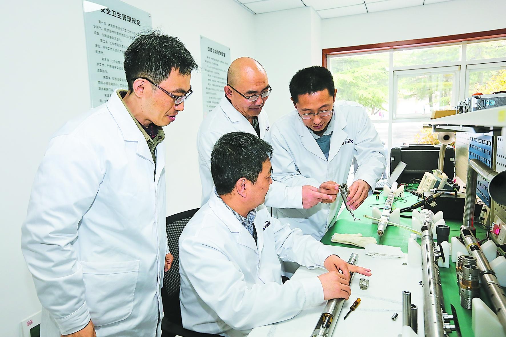 团队成员孙锋记得,为了满足对测井仪器地面系统传输速率和稳定性精益求精的要求,无数个深夜,他不停地绞尽脑汁,把刚写好的软件代码又删除修改;为了让新仪器缩短总长度实现一趟快测的极致目标,大家反复讨论、集思广益,在一个短节上集成更多的功能,好在长度固定的前提下安装更多的电子元器件;为了提升仪器绝热性能、实验新的隔热工艺,首席技师李海查阅众多资料,像神农尝百草一样,从数不清的金属和非金属配件里,寻找符合耐高温要求的最佳排列组合。