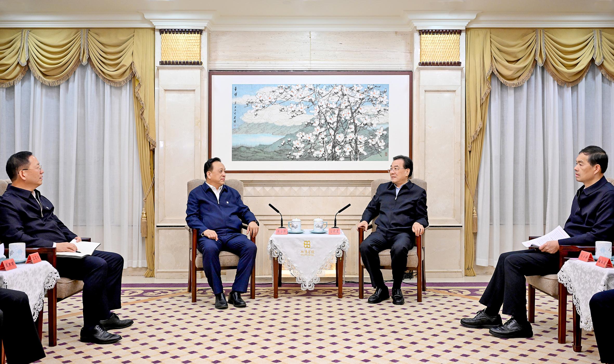 本报讯 记者赵士振报道:11月24日,集团公司党组书记、董事长侯启军在南京拜会江苏省委书记、省人大常委会主任信长星,省委副书记、省长刘小涛。双方就进一步深化合作进行深入交流。