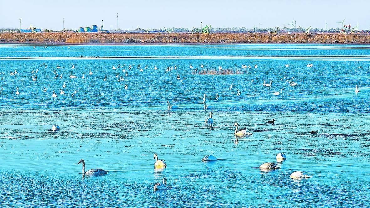 胜利油田孤东采油厂红柳油区位于黄河三角洲国家级自然保护区内。该厂持续加强黄河流域生态环境保护,推广应用环保围堰、密闭取样闸门、长寿命流程等绿色环保产品和采油、集输全过程密闭生产技术,实现了油气开采全过程的绿色化、清洁化,为天鹅、丹顶鹤、灰鹤等多种珍稀候鸟在黄河口迁徙过冬营造良好生态环境。