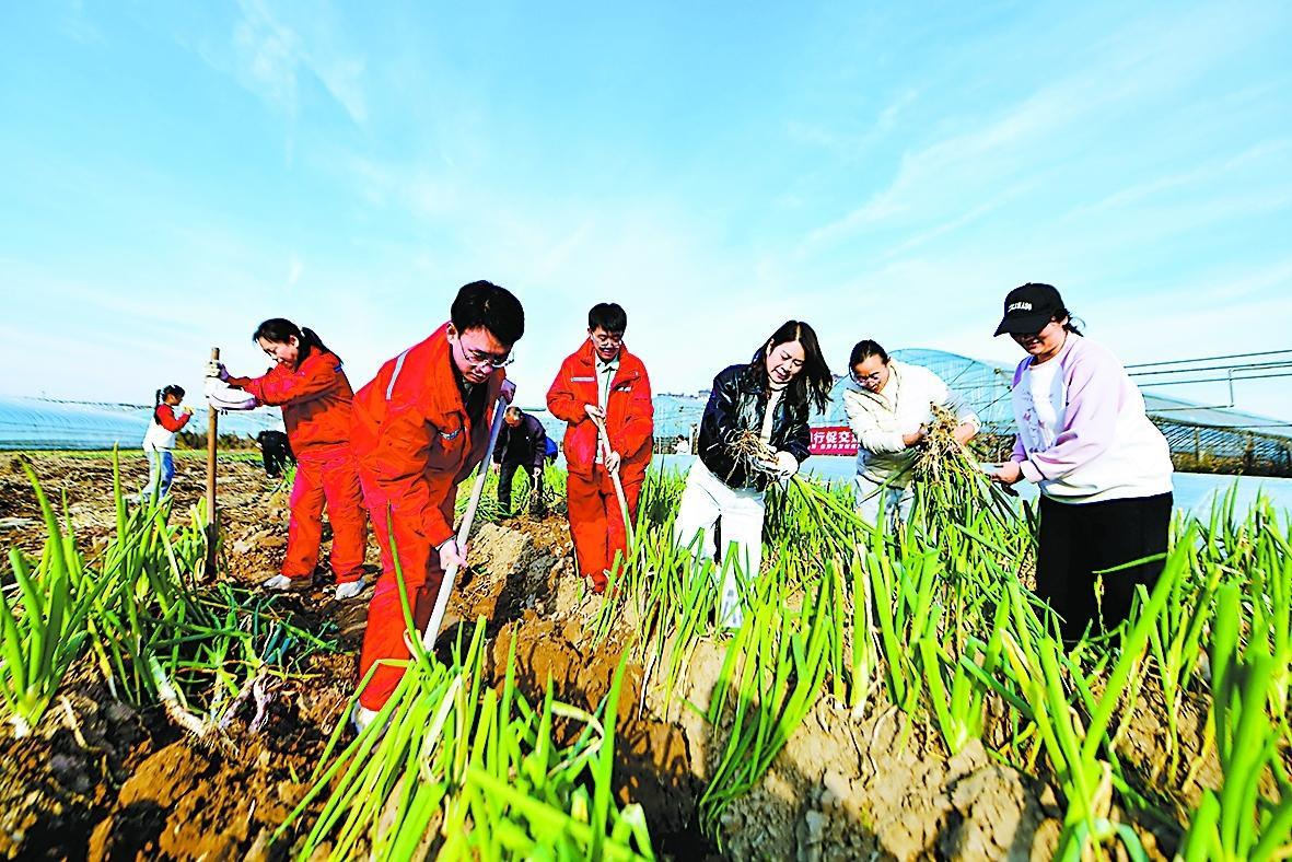 11月22日,中原油田文留采油厂工艺研究所与油田勘探开发研究院内蒙开发研究所联合开展助农活动,党员及技术骨干走进田间协作采收大葱。