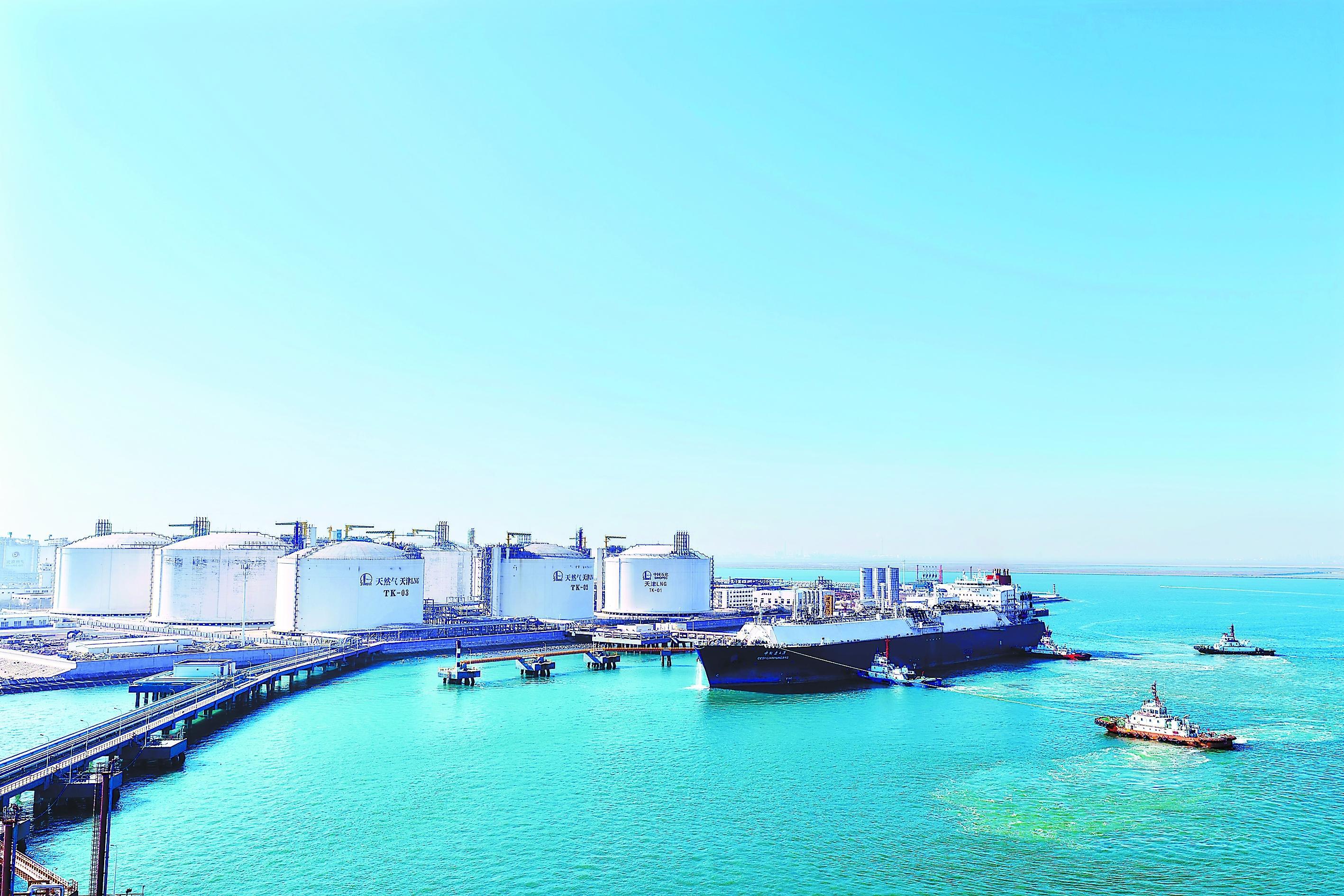 天然气分公司天津LNG接收站扎实做好冬季天然气保供,11月以来外输天然气超3.2亿立方米,可满足2000万户家庭用气需求。图为12月2日“中能天津”号LNG运输船靠泊天津LNG接收站码头。