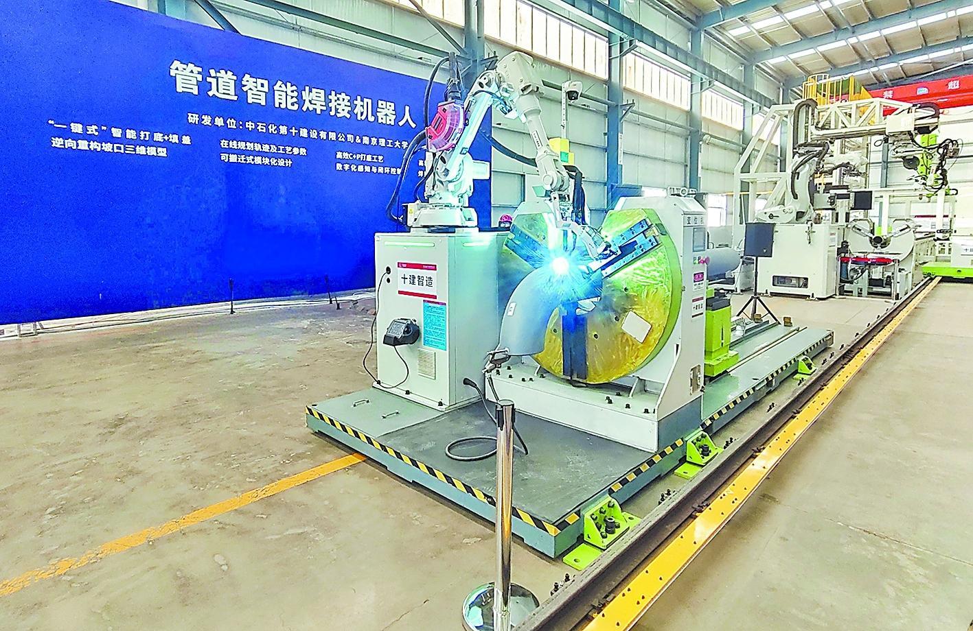 ◆特长:配备大视野激光相机,可自动寻找焊缝位置、识别焊缝特征,实时调整焊接工艺参数并修正路径,实现外径80毫米至400毫米规格的管道一键式焊接,焊接效率是传统手工焊工艺的4倍,焊接质量合格率达100%。(田元武)