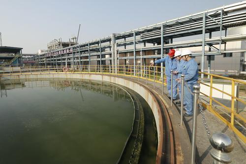 中安联合污水处理装置员工在装置巡检。本报记者 赵天奇 摄