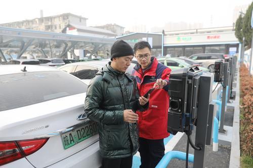 今年以来,安徽合肥石油持续做大充电市场份额,增强绿色能源保障能力,截至11月底,已投运充电站96座,充电量同比增长150%。图为12月8日大众综合加能站员工指导客户操作充电设备。孙德荣 摄