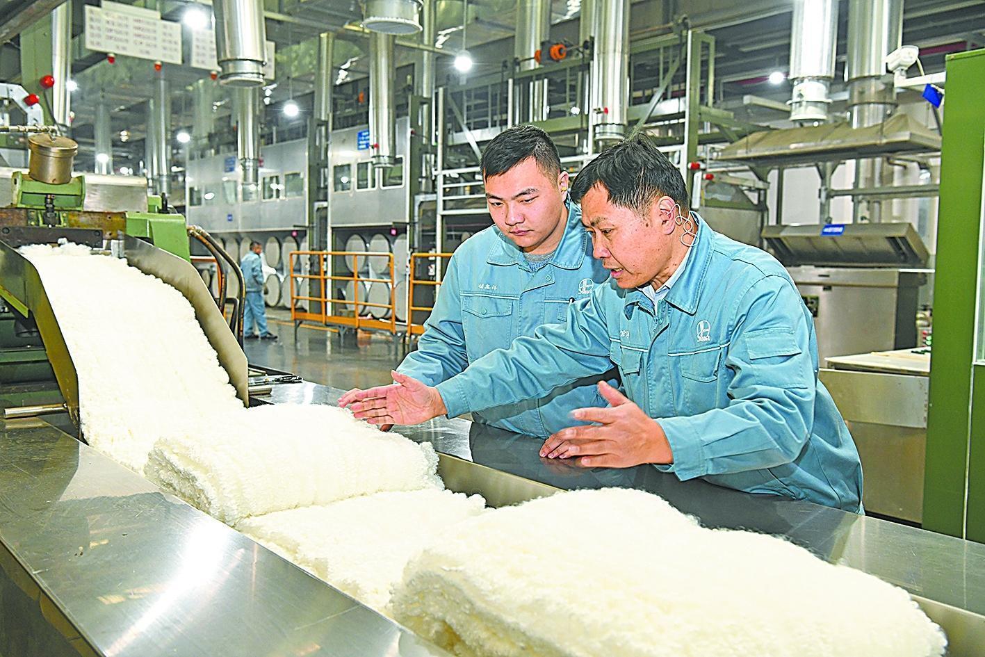 仪征化纤先后推出“赛羽绒”纤维等明星产品。“赛羽绒”纤维不仅具备羽绒的柔软触感与出色的保暖性能,而且不跑毛,其制品可反复洗涤,兼具防霉防蛀特性。