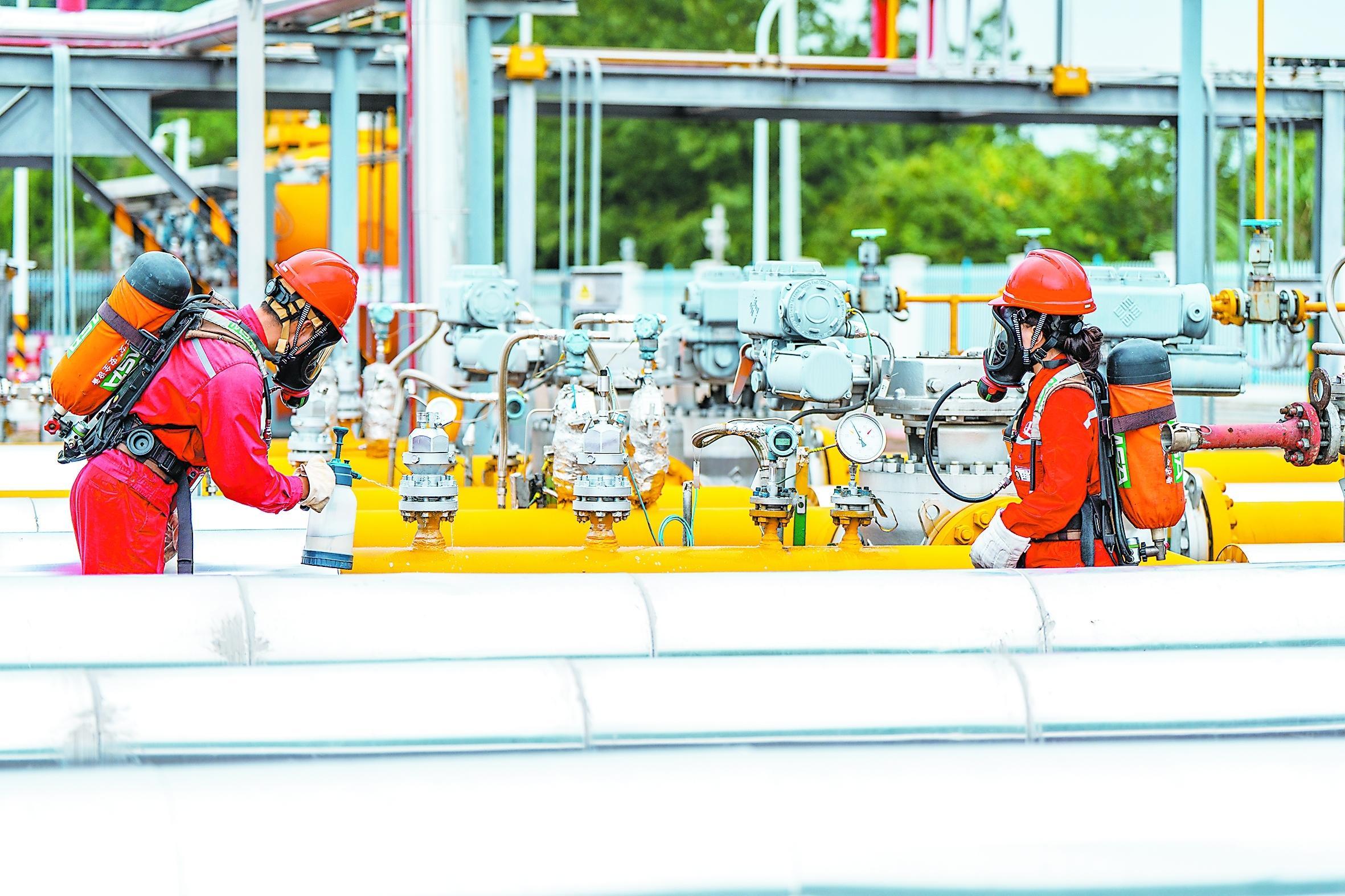今年以来,西南油气分公司聚焦高质量勘探、效益化开发一体化,紧盯产销目标,统筹组织运行,动态优化调度,强化应急管控,持续提升全链条生产运行效率,鼓足干劲冲刺年度目标任务。截至12月19日,生产天然气103.6亿立方米、销售天然气95.6亿立方米,油气产量销量再攀新高。图为近日元坝气田员工在巡检。