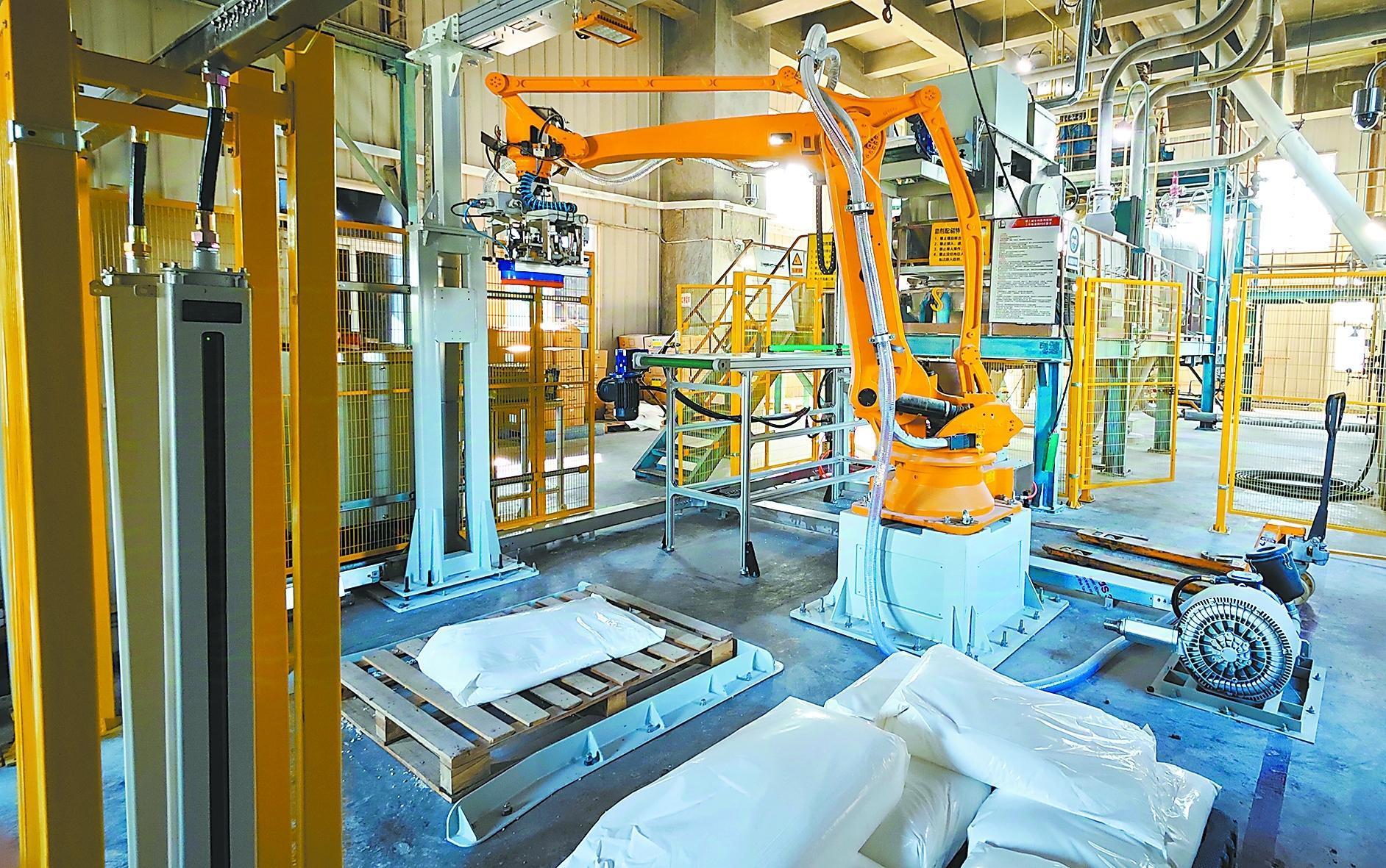 扬子石化在塑料厂2号聚乙烯装置部署了一套基于3D视觉的机械臂,实现助剂抓取、破包、投料全流程自动化。该设备利用3D智能相机对助剂堆垛进行毫米级精度扫描,通过拆垛分析,在堆垛不整齐的情况下仍能有效规划机械臂取包顺序及抓取角度,通过“手、眼、脑”的精密配合,助剂抓取成功率超99%,助剂送至全封闭拆包机后进行破包处理,并利用负压原理抽除助剂包装袋中残余粉料,最后将助剂投入加料口,同时收纳包装袋。机械臂的引入减轻了人员工作强度,保障了助剂投料过程安全,同时破包环节的除尘设计大幅减少粉状物料外泄,有效提升了作业效率。使用基于3D视觉的机械臂有效减少助剂投放过程中90%以上扬尘,大幅改善现场环境。经测算,该应用场景部署后,年节约人工费用约45万元。