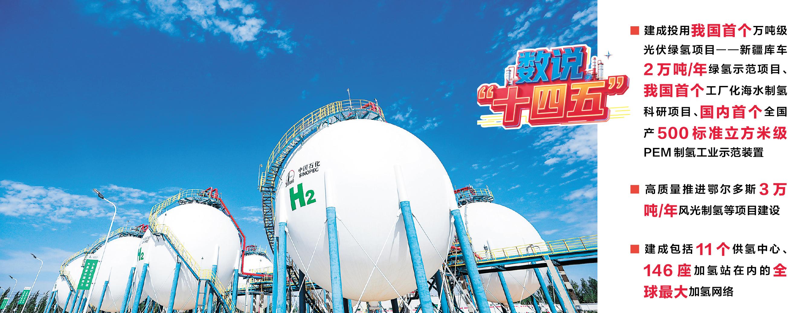 “十四五”以来,中国石化锚定打造“中国第一氢能公司”目标,全力推进绿氢生产与应用,建成投用我国首个万吨级光伏绿氢项目——新疆库车2万吨/年绿氢示范项目、我国首个工厂化海水制氢科研项目、国内首个全国产500标准立方米级PEM制氢工业示范装置,高质量推进鄂尔多斯3万吨/年风光制氢等项目建设,截至2025年10月,建成包括11个供氢中心、146座加氢站在内的全球最大加氢网络,绿氢产量居国内领先地位,持续引领氢能产业发展。