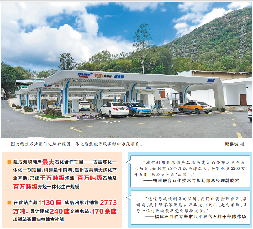 五年来,中国石化驻闽企业统筹推进成品油销售网络建设、炼化一体化基地建设及各业务板块协同发展,逐步构建起涵盖油品供应、炼化生产等的多维度综合能源服务体系。作为福建省成品油供应主渠道,福建石油持续优化终端网络布局,在营站点超1130座,累计供应成品油2773万吨。福建炼化构建泉州泉港、漳州古雷两大炼化产业基地,做强石化产业集群,形成千万吨级炼油、百万吨级乙烯及百万吨级芳烃一体化生产规模。