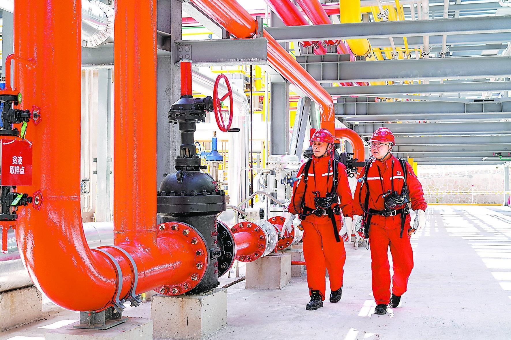 在外输环节,高压环境对流程提出更高要求。“外输压力要保持在3兆帕,如果采用以往的一级节流方式,直接从井口的50兆帕甚至更高压力降至3兆帕,巨大的压差会导致节流阀出现冰堵现象,严重影响管道正常生产。”该厂副总工程师、生产运行岗高级主管王周杰说。