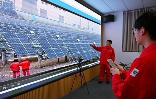今年以来,胜利油田新能源开发中心通过整合远程视频监控、无人机巡检、电能质量在线监测及群调群控系统,全面推进光伏电站数智化管理。图为12月22日,技术人员在监控中心查看现场情况,并远程启动机器人对光伏板进行清扫作业。本报记者 朱克民 摄 通讯员 付 丽 文