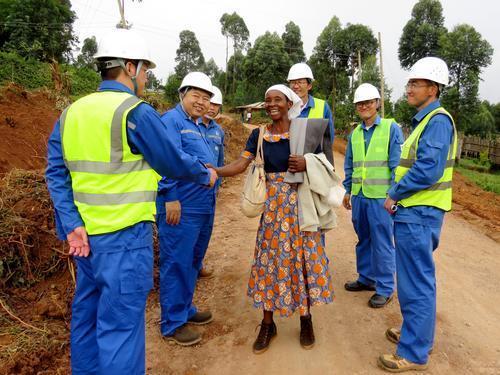 肯尼亚村民卡利姆(左四)向胜利建工公司项目部成员表达感谢。 邱怀超 摄