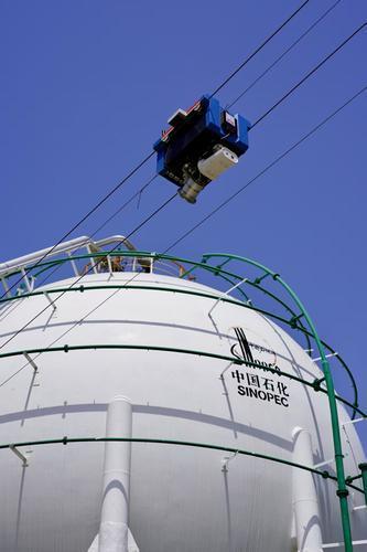 飞索机器人掠过镇海炼化球罐区。 任 毅 摄