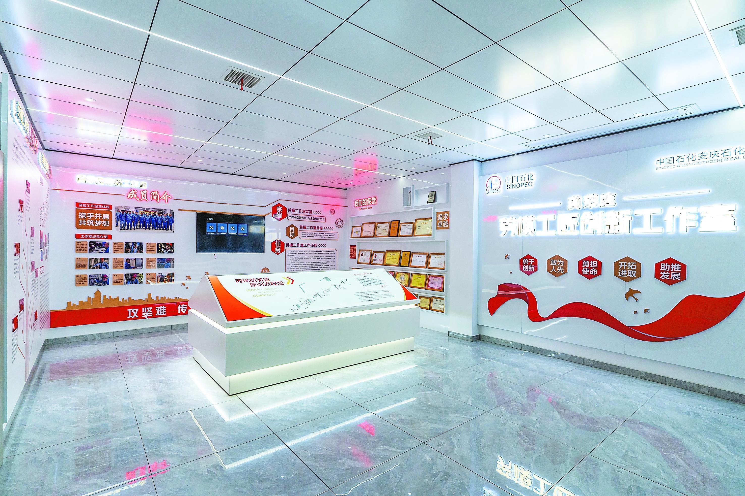 步入安庆石化厂史教育展厅,一部用汗水、智慧与忠诚书写的创业诗,在375平方米的空间里徐徐展开。展厅分序厅、发展之源、动力之本、和谐之美、党建引领、影视厅6个单元。序厅之内,“皖江明珠”主题形象墙巍然屹立,将黄山松的坚毅风骨、振风塔的凌云壮志、徽派建筑的深厚底蕴与钢铁装置的工业之美完美融合;由员工创作的《安庆石化赋》,骈散相间、气韵磅礴,道尽了半个世纪的风雨沧桑,讴歌了一路走来的坚定信仰。发展之源作为展厅主要单元,讲述了安庆石化的4次创业历程。
