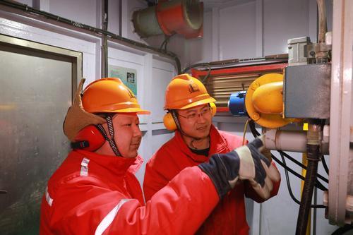 近日,针对海上大风寒潮天气,胜利油田海洋采油厂海上平台落实防寒防冻措施,组织干部员工增加易冻部位和伴热带巡检频次,充分利用自动化监控系统准确掌握加热器、热媒炉等保温设施运行状态,筑牢海上安全生产防线。图为1月11日胜利油田中心三号平台员工巡检热媒炉运行情况。 张 灿 摄