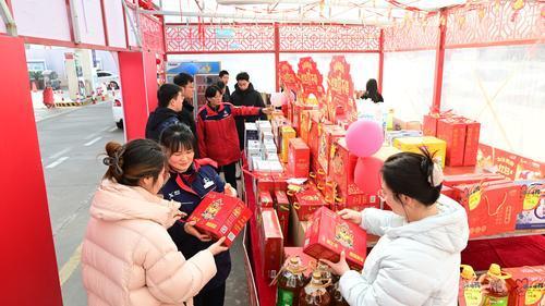 近日,河南南阳石油精心打造“年货大街”,集中推广易捷商品,在营造节日氛围的同时,有效提升易捷品牌影响力,进一步拓市扩销。图为顾客在卧龙工业路加能站内选购商品。 姜明武 摄
