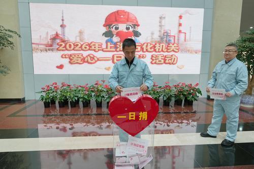 近日,上海石化各直属单位相继举行2026年“爱心一日捐”活动。本次活动共募集爱心款60余万元,这笔爱心款将全部用于困难职工节日慰问、子女助学、医疗帮扶及职工生活保障等,切实帮助职工解决急难愁盼问题。上海石化“爱心一日捐”活动已持续开展30年,累计超57万人次参与。图为1月14日,上海石化机关“爱心一日捐”活动现场。李英豪 摄