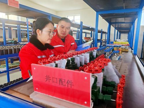 华北油气分公司采油一厂采油管理六区依托“五小”创新工作体系,鼓励员工自主攻坚。他们以废旧油管为主要材料,搭配废旧木板,经过设计、切割、焊接等工序,制作出18个定制货架,在盘活闲置资产的同时节约采购成本,有效助力库房精细化管理。图为员工对物资进行分类、盘点与登记。