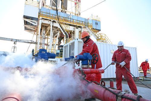 胜利石油工程渤海钻井总公司压实钻台、泵房、网电箱和管汇等关键区域冬防保温职责,加强设备设施的防冻防凝监测与维护,做到识别风险、应对措施和应急保障三到位,确保钻井施工安全平稳运行。图为1月21日,在胜利油田义104-平9井施工现场,50689钻井队员工用高温蒸汽对管汇阀门进行加热,防止管汇和阀门出现冻结。王国章 摄 王 福 文