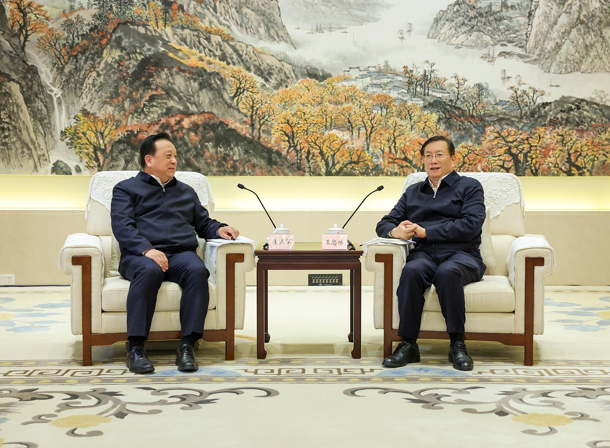 本报讯 记者赵士振 熊 海报道:2月26日,集团公司党组书记、董事长侯启军在武汉拜会湖北省委书记、省人大常委会主任王忠林,双方就进一步深化合作进行座谈交流。