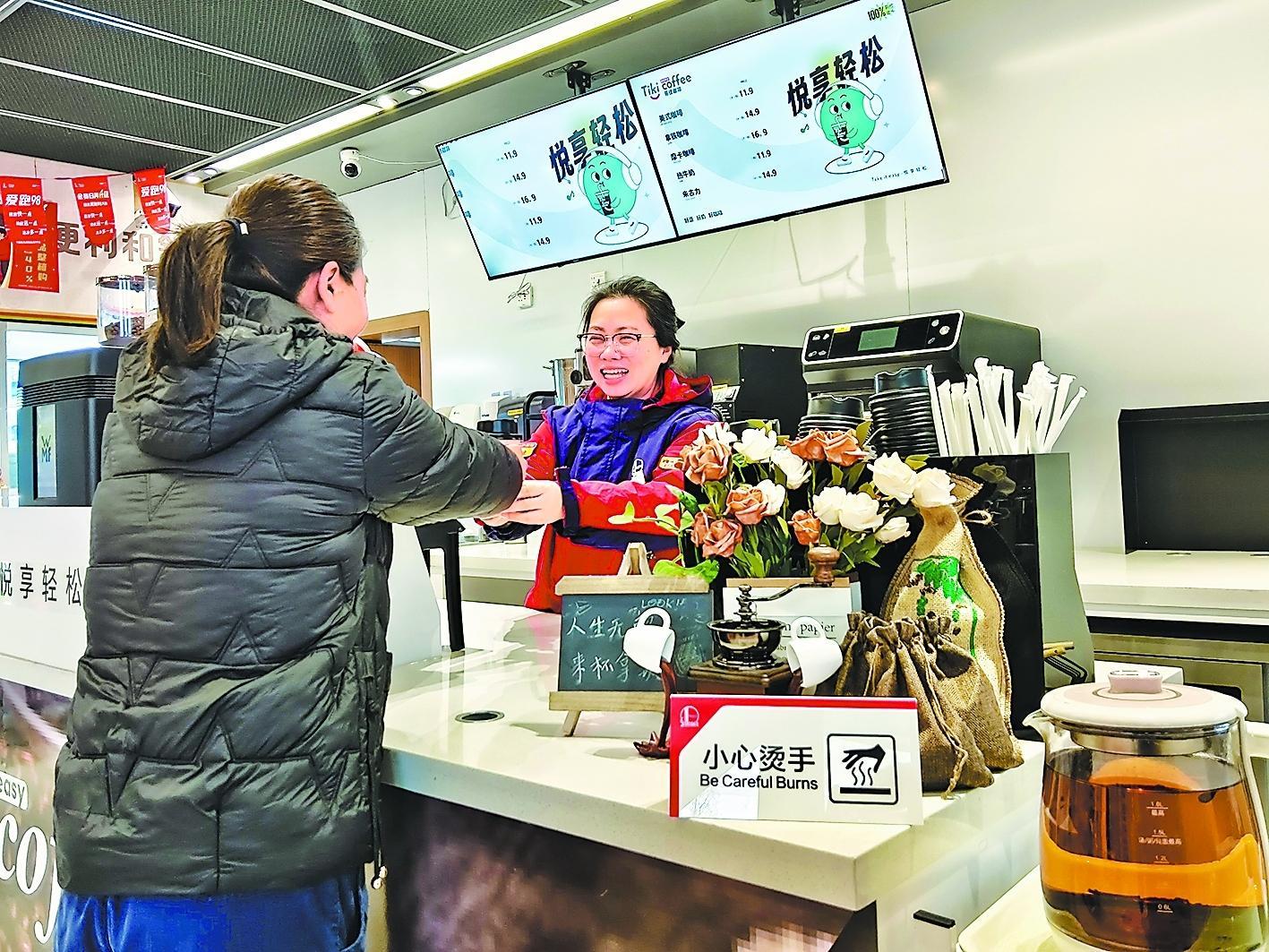 浙江石油持续做大易捷服务规模,拓展咖啡、餐饮、洗衣等生活服务范围,构建多元化消费场景。图为2月27日顾客在浙江嘉兴石油十九加能站易捷金牌人工咖啡店购买饮品。乔婷婷 摄